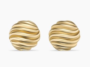 18K gold earrings with sculpted wave texture, capturing graceful movement and modern shine