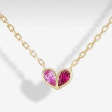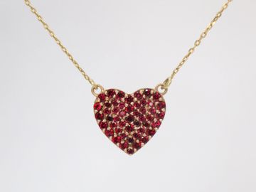 18K gold heart pendant set with vivid red Ruby — a symbol of pure love.