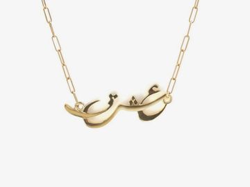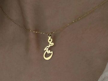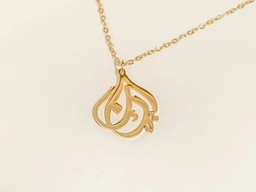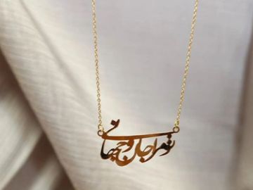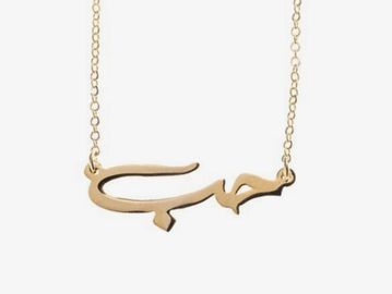 18K gold necklace featuring the Arabic word for “Love,” crafted in elegant calligraphy