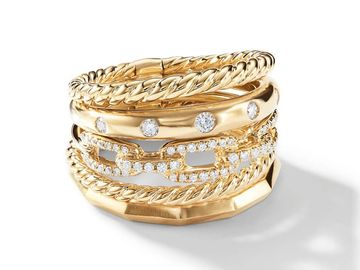 18K gold statement ring featuring layered textures and brilliant diamonds for bold radiance