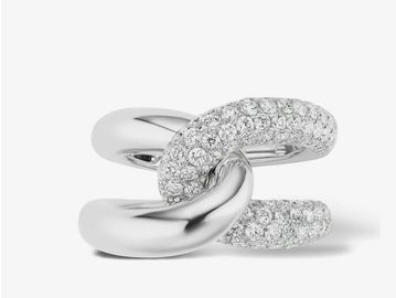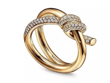 18K gold ring with interlaced loops, pavé-set with diamonds — symbolizing eternal connection